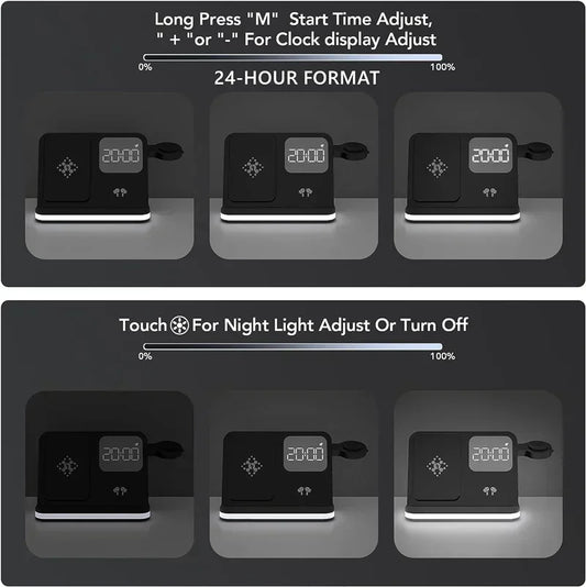6-in-1 LED Wireless Charging Station with Alarm Clock
